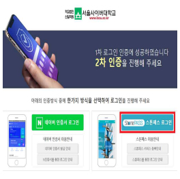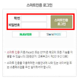 본교에서는 사이버대학의 『원격교육 설비 기준』에 따라 대리수강 및 시험부정 방지책으로 2차 인증에 대한 시스템을 갖추어야 합니다. 2차 인증의 기술 중 스마트폰을 활용할 수 있는 지문인증과 OTP 기술을 통틀어 스마트 인증이라고 정의하고 있습니다. 스마트 인증은 PC 에서 학교 포탈시스템에 로그인 할 때 스마트폰에 설치된 네이버앱 또는 스톤패스앱을 통하여 인증을 받은 후에 로그인을 처리하게 됩니다.